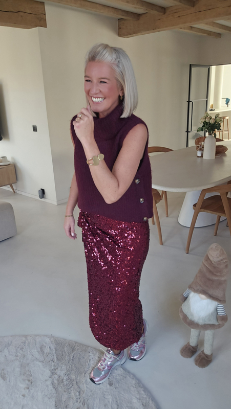 CHIQUE SPARKLE maxi wrap skirt burgundy