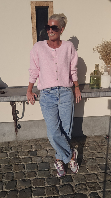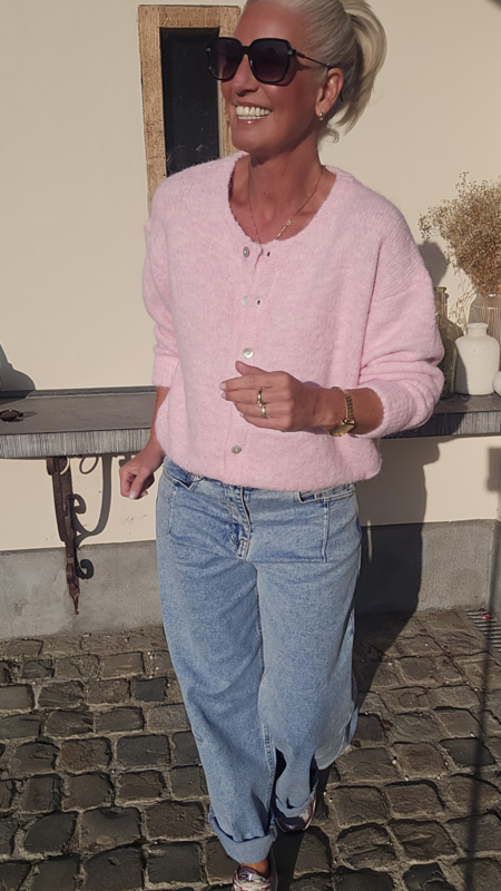 Lekker zachte cardigan, knoopjes tot onderaan, ronde hals, lange mouwen. Kan perfect…€ 42,00