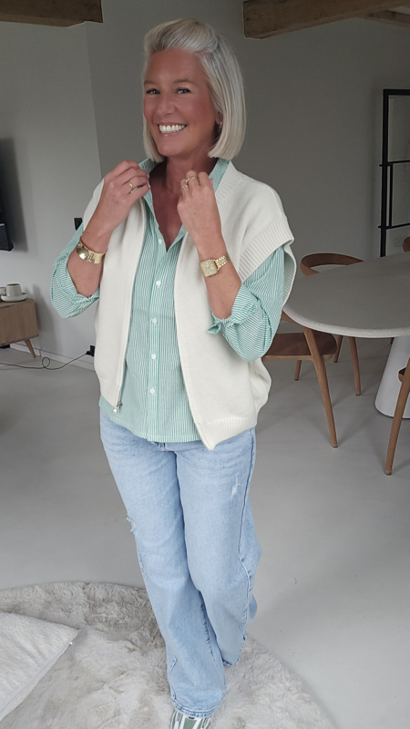 De AZUR Zip Gilet is een stijlvolle layering essential met een luxueuze feel. Gemaakt in een zachte kid mohair blend en afgewerkt met een rits voor een moderne, casual look. De mouwloze snit maakt dit gilet perfect om te dragen over een blouse, T-shirt of lichte knit — ideaal voor lente, zomeravonden en tussenseizoenen.