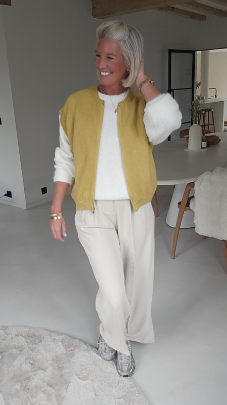 De AZUR Zip Gilet is een stijlvolle layering essential met een luxueuze feel. Gemaakt in een zachte kid mohair blend en afgewerkt met een rits voor een moderne, casual look. De mouwloze snit maakt dit gilet perfect om te dragen over een blouse, T-shirt of lichte knit — ideaal voor lente, zomeravonden en tussenseizoenen.