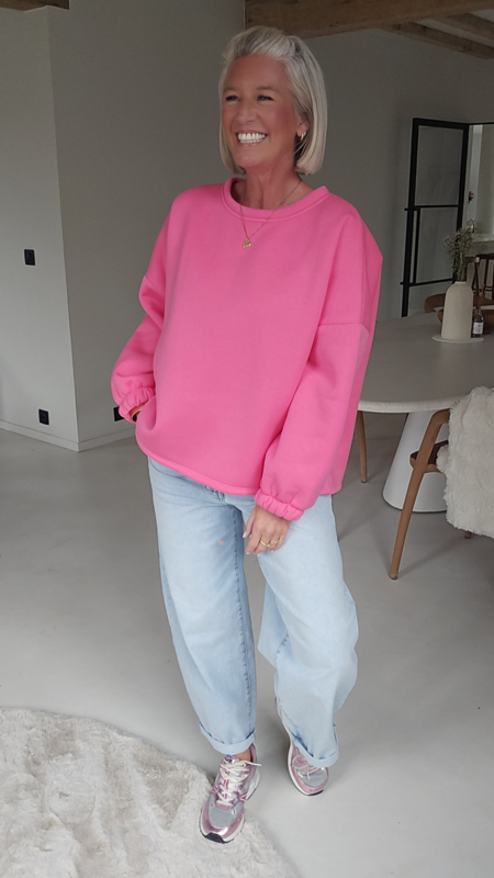 Heerlijke oversized sweatshirt gevoerd met lekker zachte fleece, recht model, lange mouwen met een elastisch uiteinde.