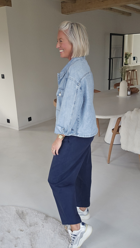 Deze carrot fit broek zit losjes rond de heupen en loopt licht toe naar onder, wat zorgt voor een flatterend silhouet zonder in te boeten op comfort. Dankzij de zachte stretchstof en elastische tailleband is dit zo’n broek die je de hele dag wil blijven dragen.