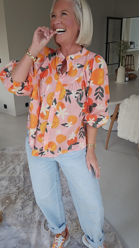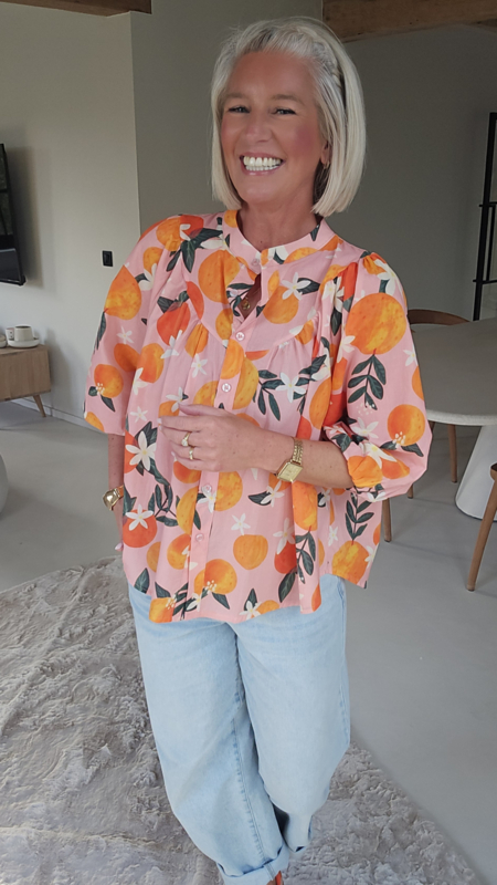 Een frisse citrusprint met mandarijntjes voor een zomerse, mediterrane look.