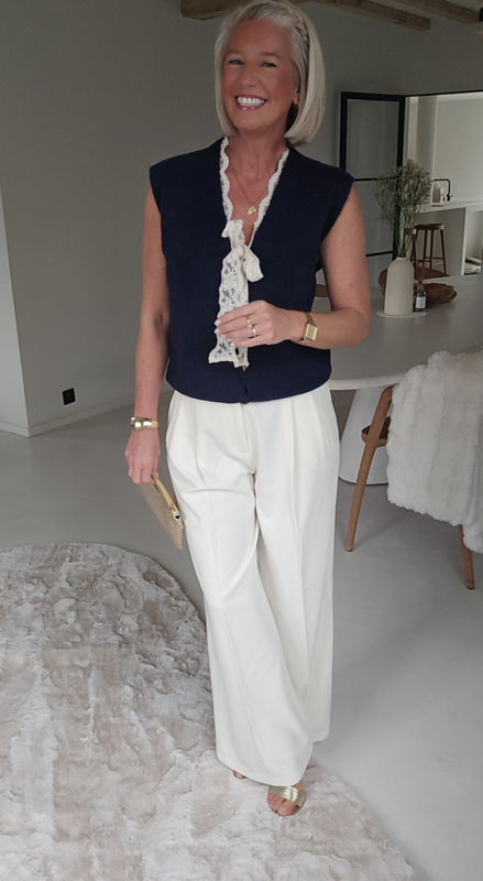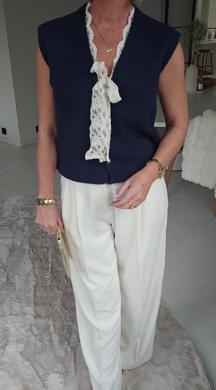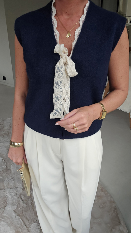 De Lace Whisper sleeveless cardigan is een mouwloze cardigan met verfijnde kantafwerking en schattige hartvormige knoopjes vooraan. Elegant, vrouwelijk en super veelzijdig.
