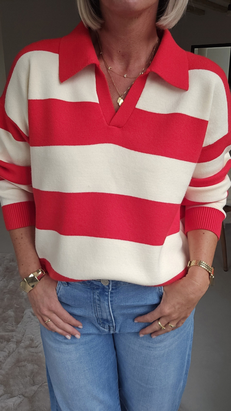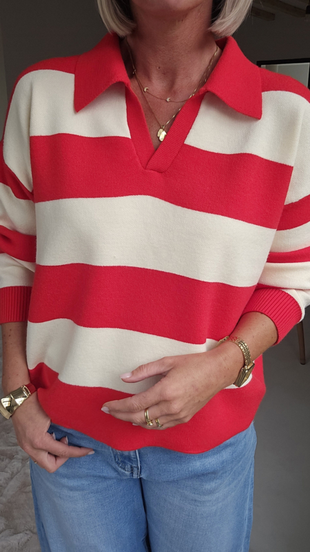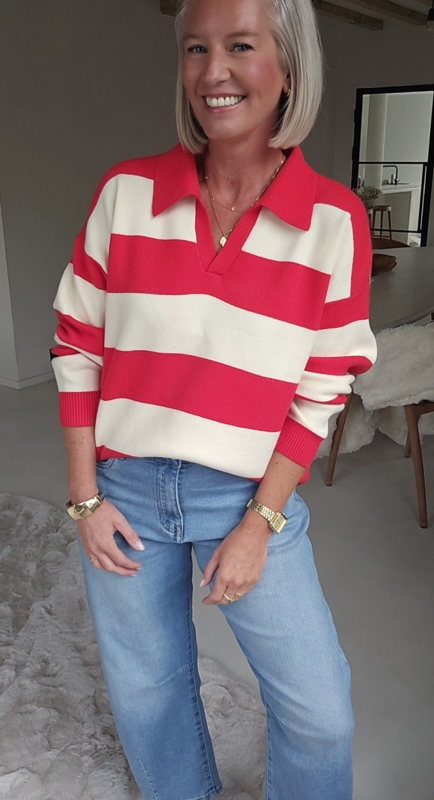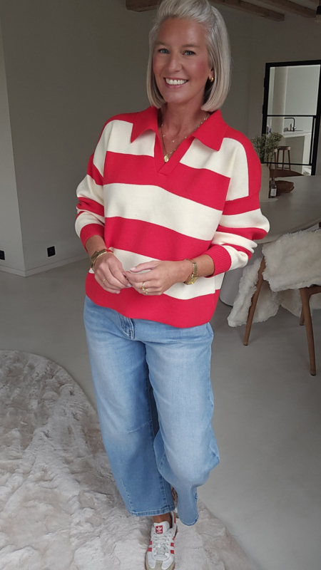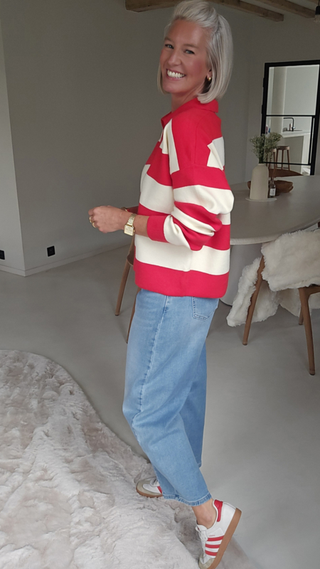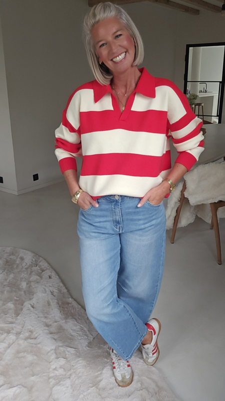 De Candy Rugby Knit is zo’n sweater die instant vrolijkheid brengt in je outfit. De speelse strepen, zachte knit en relaxte fit zorgen voor een comfy maar opvallende look die je het hele jaar door kan dragen.