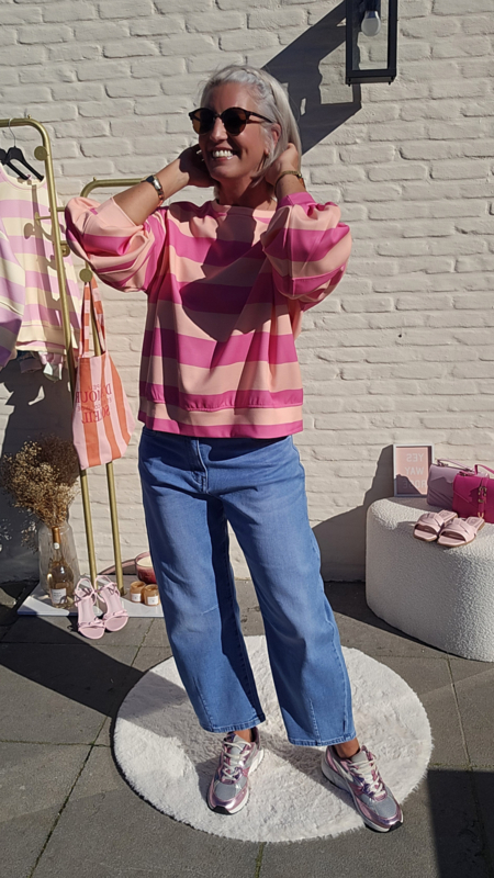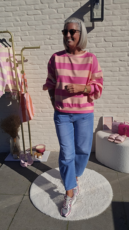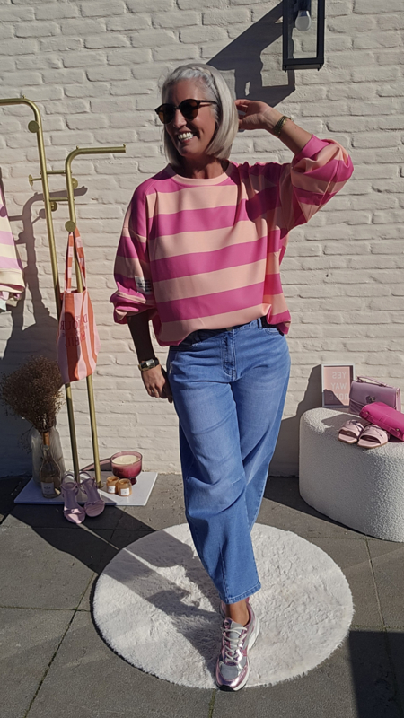 De Candy Crush Sweat is dé perfecte mix van comfy, sporty en playful. De zachte pastelstrepen geven een frisse, vrolijke vibe terwijl de losse fit zorgt voor ultiem draagcomfort. Ideaal voor een casual day, travel outfit of een stijlvolle off-duty look.