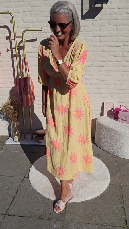 De Positano Dress is zo’n jurkje dat je aantrekt en meteen in vakantiemodus zit. Dankzij de losse pasvorm en zachte mousseline katoen voelt ze heerlijk licht en comfortabel aan — perfect voor warme dagen.