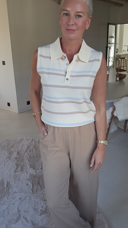 NELLA sleeveless polo knit taupe soft blue