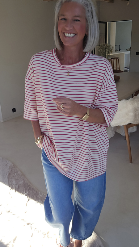 De NALIA oversized T-shirt is de perfecte comfy basic met een tijdloze marinière streep. Dankzij het heel oversized model valt hij super relaxed en nonchalant, ideaal voor een casual look.