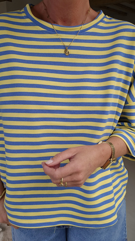 De frisse kleuren, het oversized silhouet en de zachte katoenmix maken dit een heerlijk comfortabel stuk dat je moeiteloos combineert. Ideaal voor frisse lentedagen, zomerse avonden of gewoon als cosy everyday piece.
