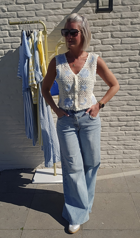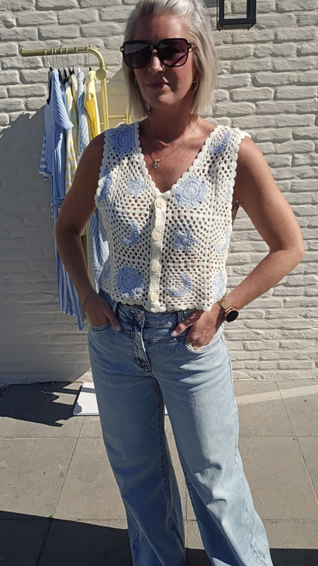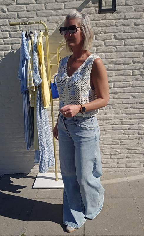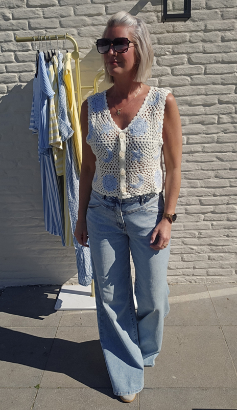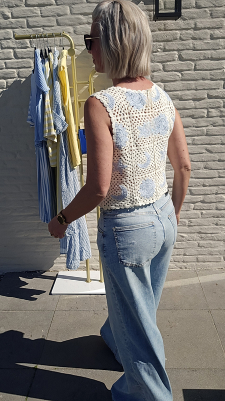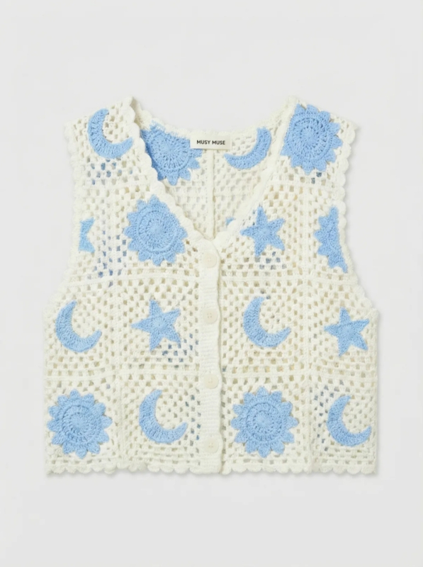De speelse combinatie van crochet met sterren en maantjes geeft je outfit een dreamy, feminine vibe met een unieke twist.