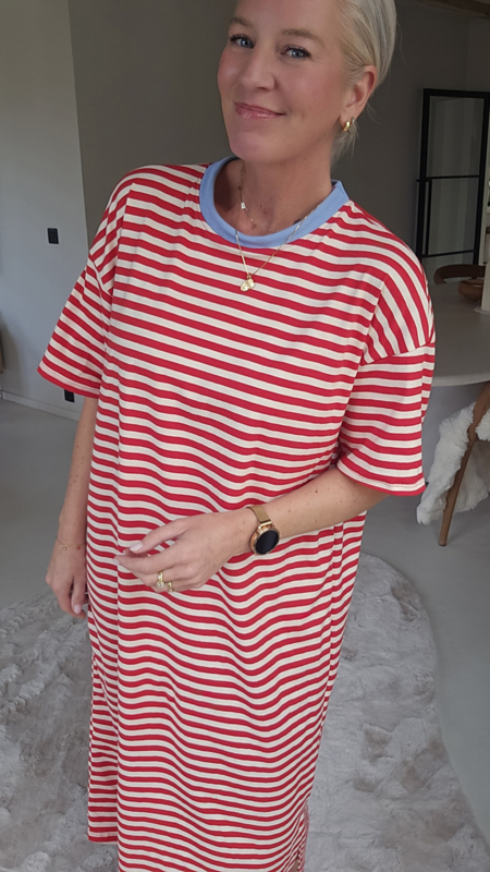 Deze oversized T-shirt dress combineert comfort met speelse kleuren voor een instant summer feeling.