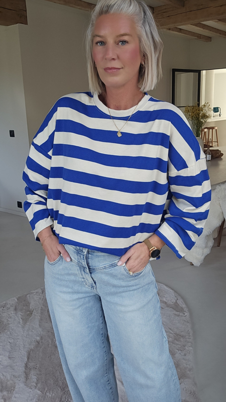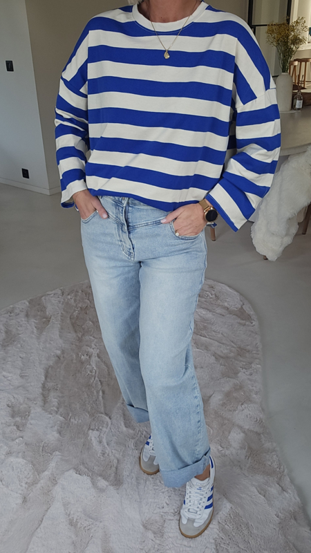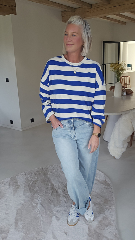 De kleurrijke streepjes geven deze comfy top een speelse, zomerse vibe zonder too much te zijn.