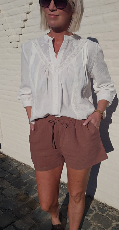 De Selina blouse is zacht, vrouwelijk en super easy te combineren — zo’n stuk dat élke outfit meteen iets eleganter maakt.