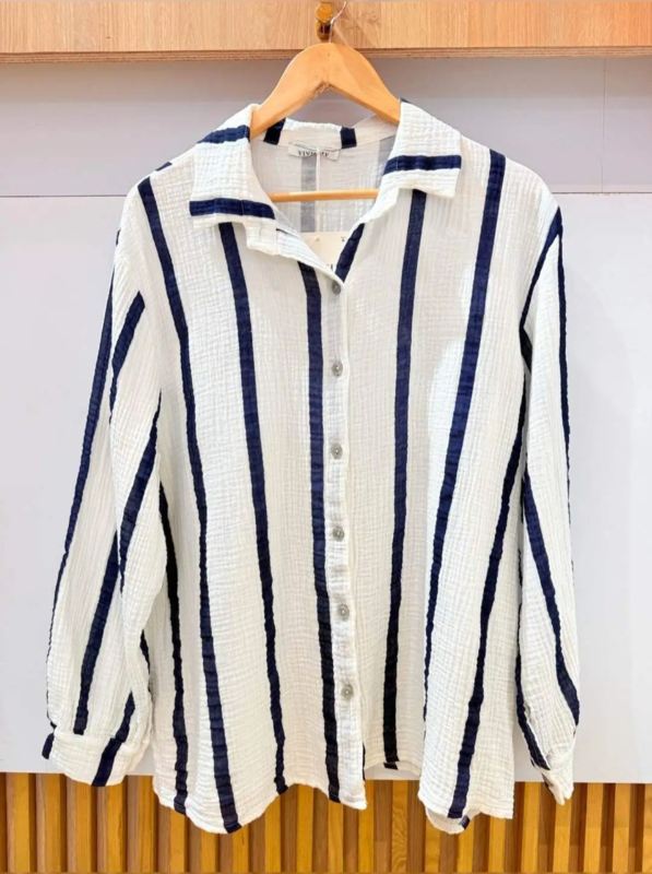 Deze luchtige tetra blouse met strepen geeft meteen die chique maar relaxte vibe.