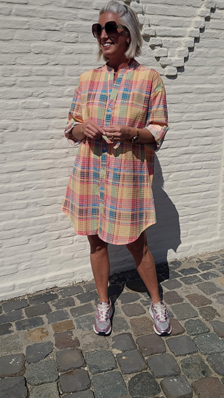 Deze kleurrijke hemdjurk met unieke ICONIC print op de rug combineert speelsheid met een luxueuze uitstraling π₯