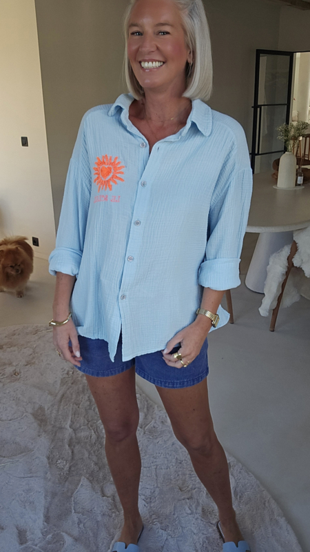 SEASIDE LOVERS short-sleeved shirt blueDe Seaside Lovers Short-Sleeved Shirt is zoān blouse die meteen summer vibes geeft āØ