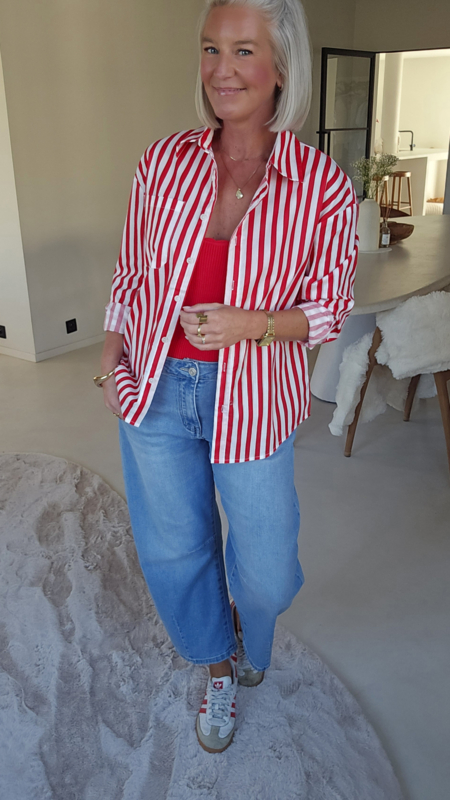 CELIA cotton striped shirt redDe Celia blouse is een tijdloze eyecatcher met frisse strepen en een luchtige fit. Dankzij de klassieke kraag, borstzak en soepelvallende stof is dit een perfecte blouse voor zowel casual als geklede looks. Een echte summerā¦