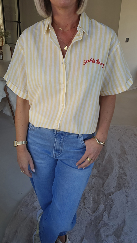 SEASIDE LOVERS short-sleeved shirt yellowDe Seaside Lovers Short-Sleeved Shirt is zoān blouse die meteen summer vibes geeft āØ