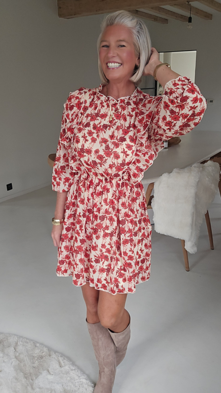 De elegante bloemenprint in warme roodtinten, gecombineerd met het luchtige, losvallende model, maakt deze jurk super vrouwelijk én comfortabel. De subtiele…